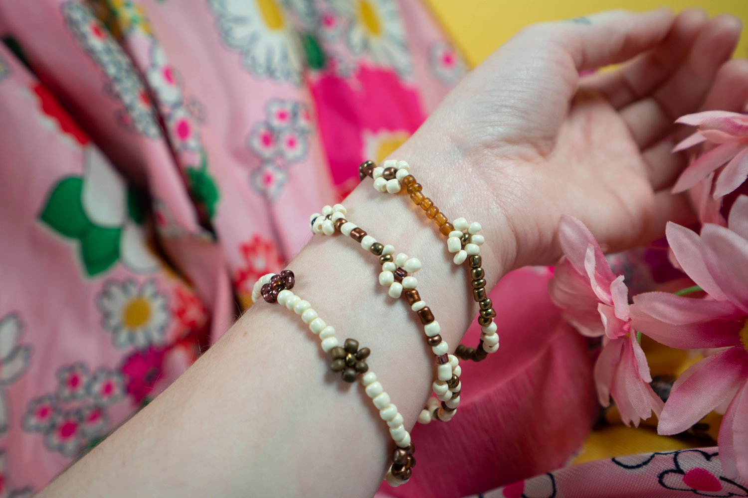 Collect a bunch of these flower bracelets and hand them out to special people you encounter during your day. Sow seeds of happiness and watch your friendship garden grow!