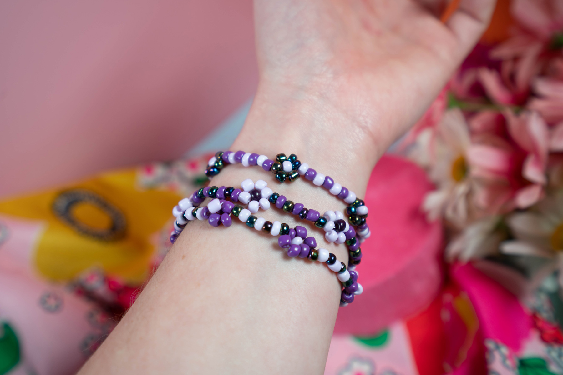 I had been struggling with panic attacks this summer. I felt one creeping up while we were traveling to South Dakota. I spotted a craft store off of an exit on the interstate hwy, so I yelled at my partner to make a detour. I bought a bunch of beads and stretchy string and made flower bracelets to keep my mind occupied the entire roadtrip and back.