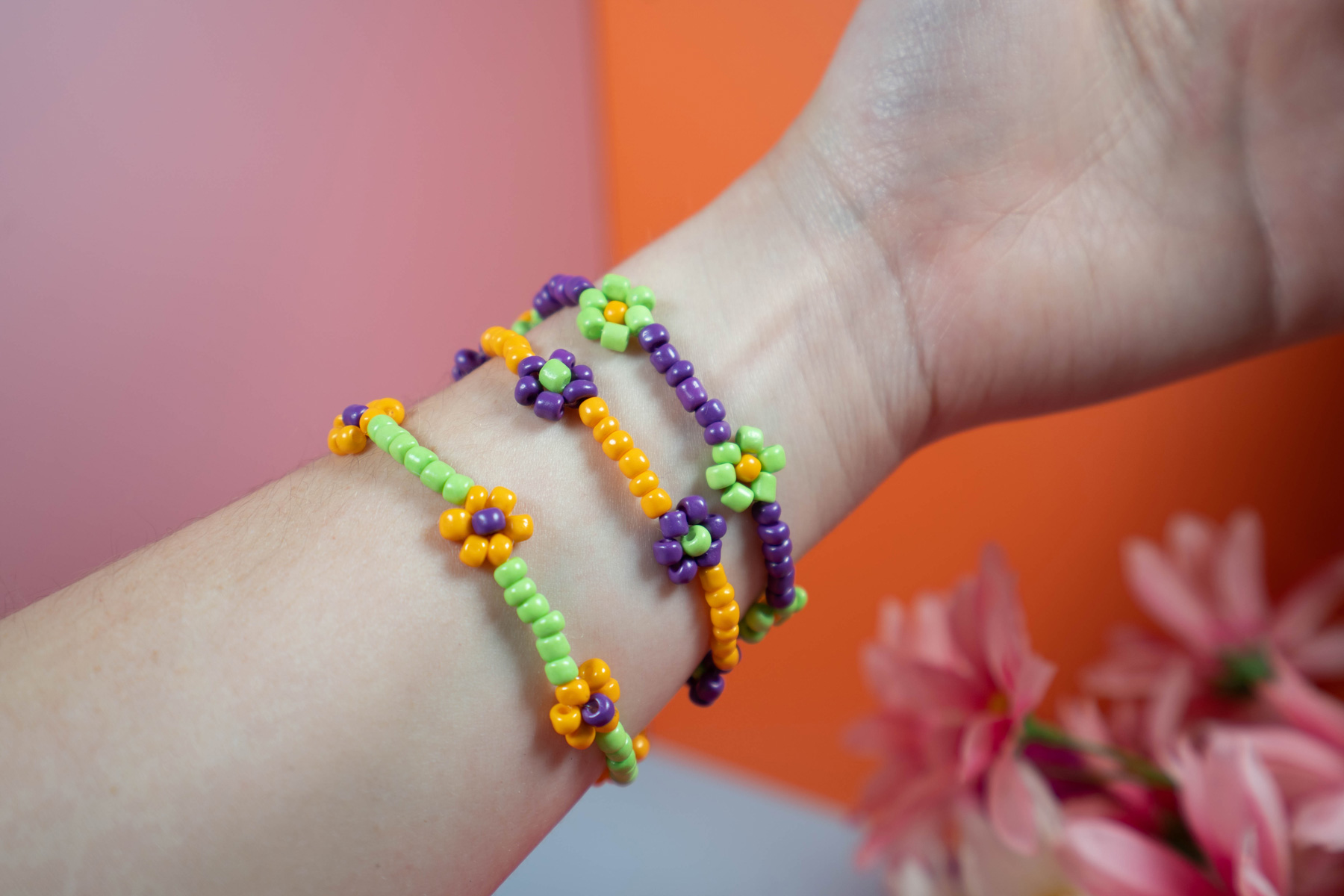 Collect a bunch of these flower bracelets and hand them out to special people you encounter during your day. Sow seeds of happiness and watch your friendship garden grow!