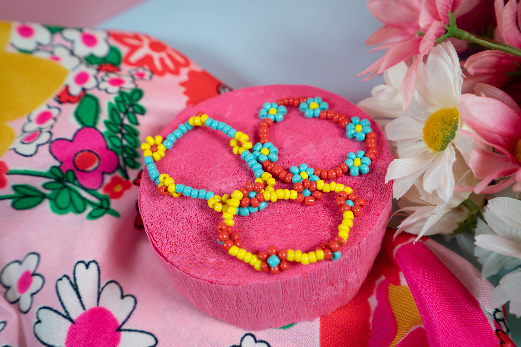 Collect a bunch of these flower bracelets and hand them out to special people you encounter during your day. Sow seeds of happiness and watch your friendship garden grow!