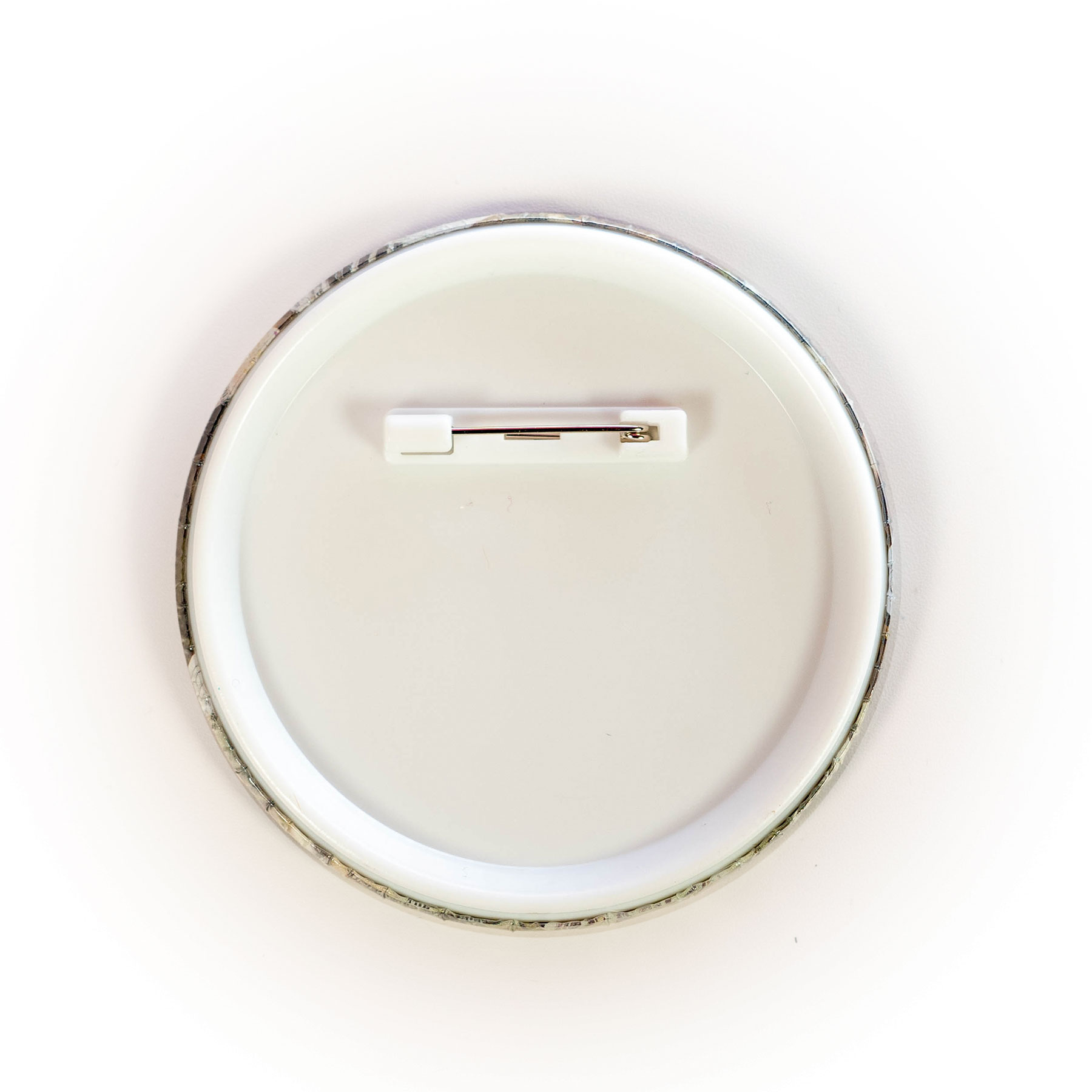 Handmade, upcycled, one-of-a-kind button with plastic back.